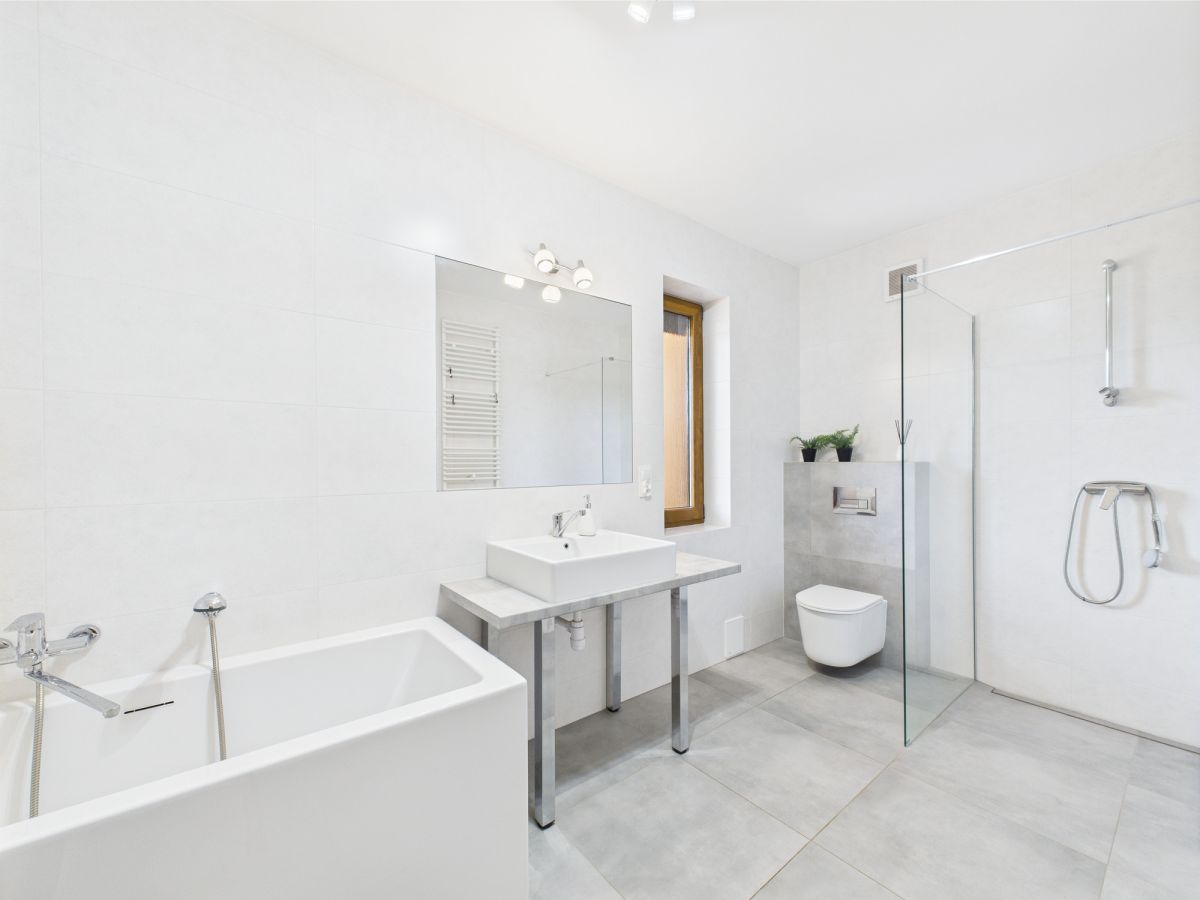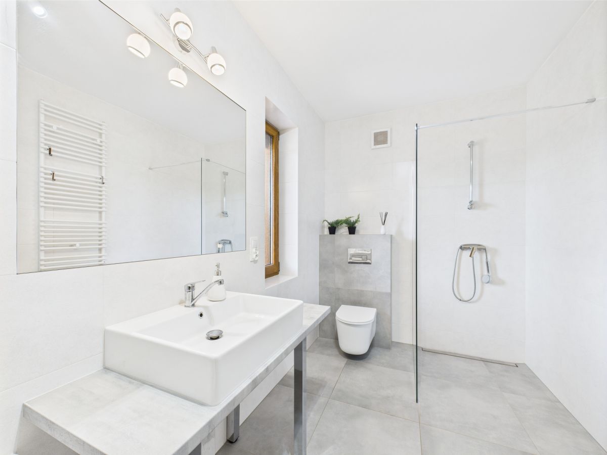 - duża ŁAZIENKA z prysznicem i miejscem na pralkę oraz suszarkę elektryczną (ok 8,5 m²)