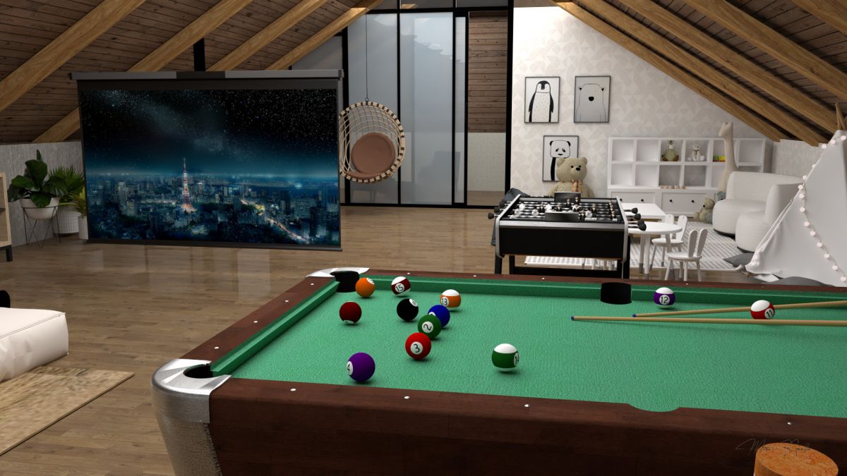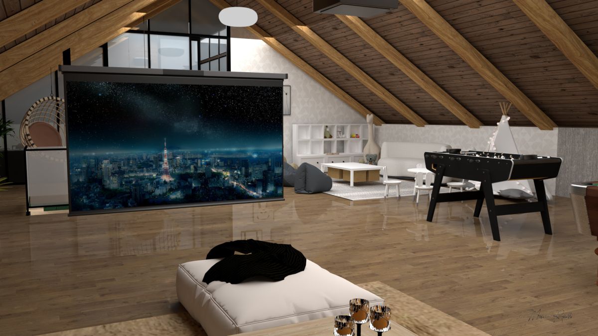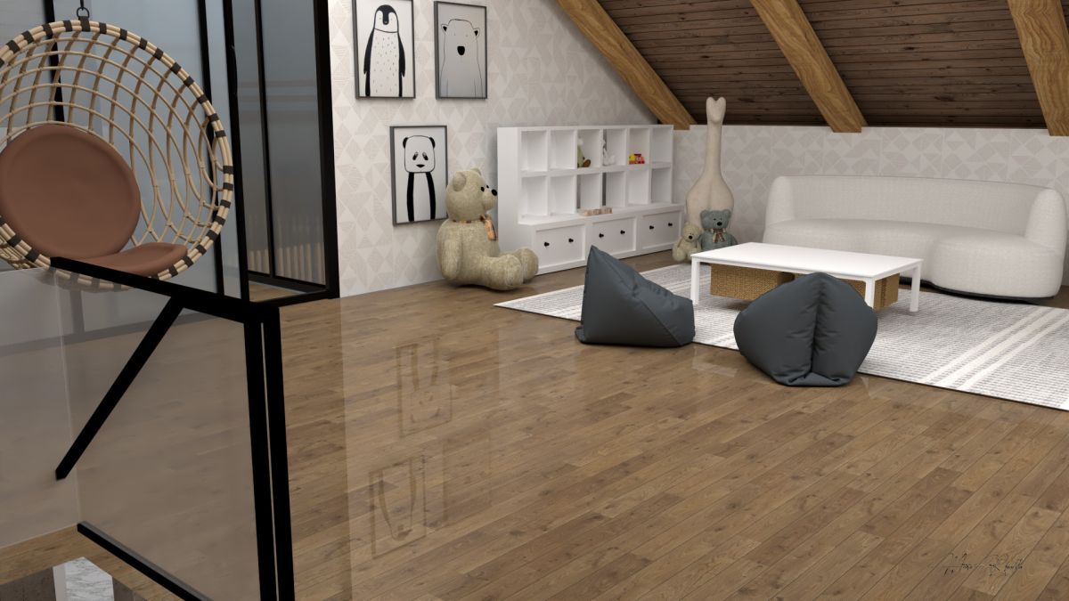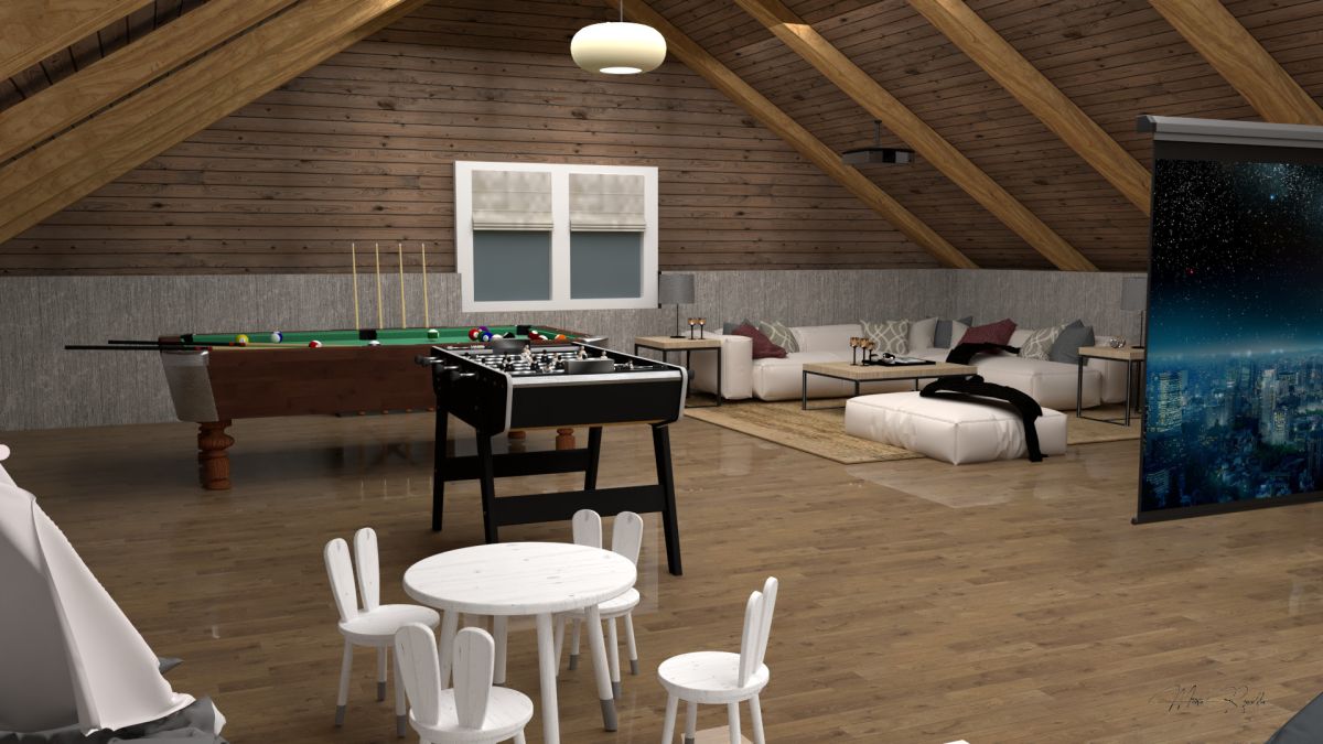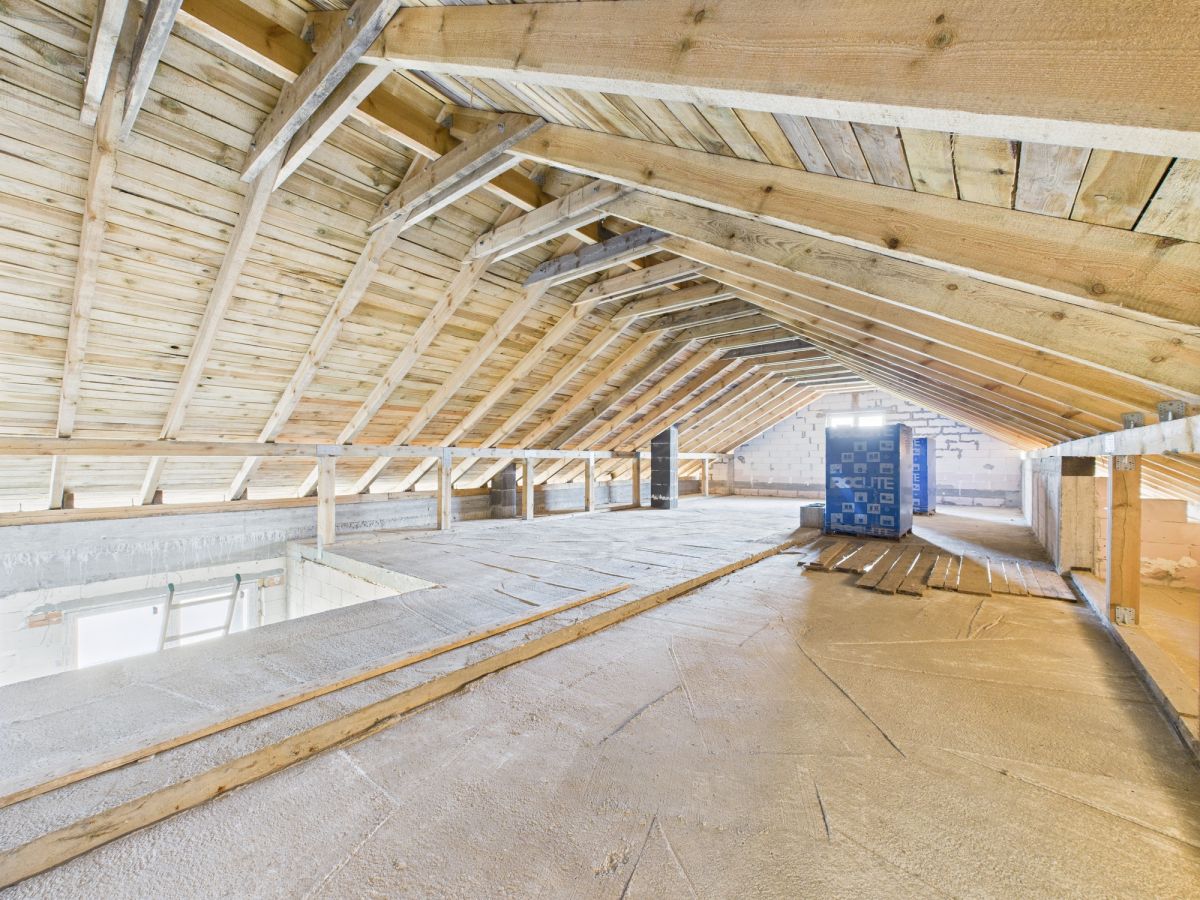 Poddasze w tym domu to prawdziwy as w rękawie. Na razie wygląda jak wielka sala gimnastyczna, w której echo odpowiada ci szybciej niż dzieci, kiedy wołasz je na obiad. Ale właśnie w tym tkwi magia - to przestrzeń do adaptacji, czyli możesz tu zrobić absolutnie wszystko: kino, bilard, królestwo dzieci, albo biuro z widokiem na krajobraz.