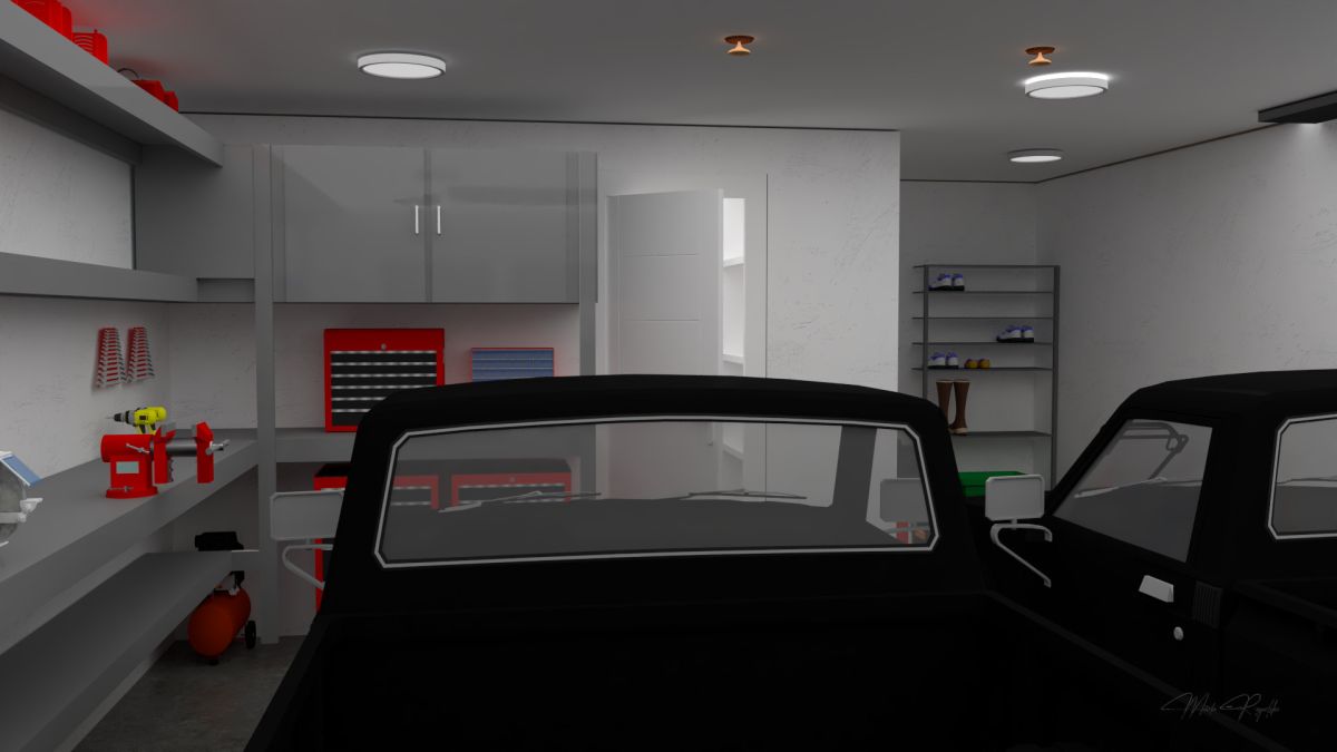 Dwustanowiskowy garaż - aktualnie świątynia budowlanych narzędzi, wiader i desek, ale docelowo bezpieczna przystań dla dwóch aut. I to jeszcze z pomieszczeniem gospodarczym! Czyli idealnym miejscem, by wreszcie nie trzymać roweru w salonie. A ten kącik do majsterkowania? Na razie to taboret i skrzynka z piwem, ale już widzę, jak zamienia się w warsztat, w którym powstaje „epokowa półka na przyprawy”.