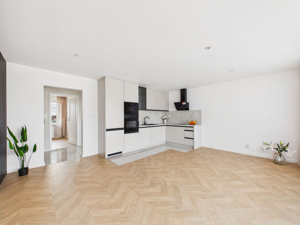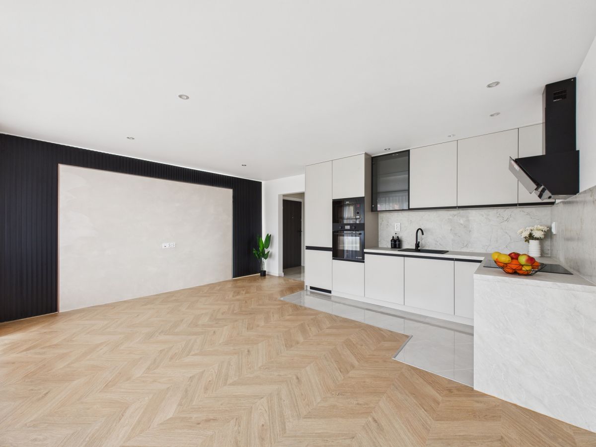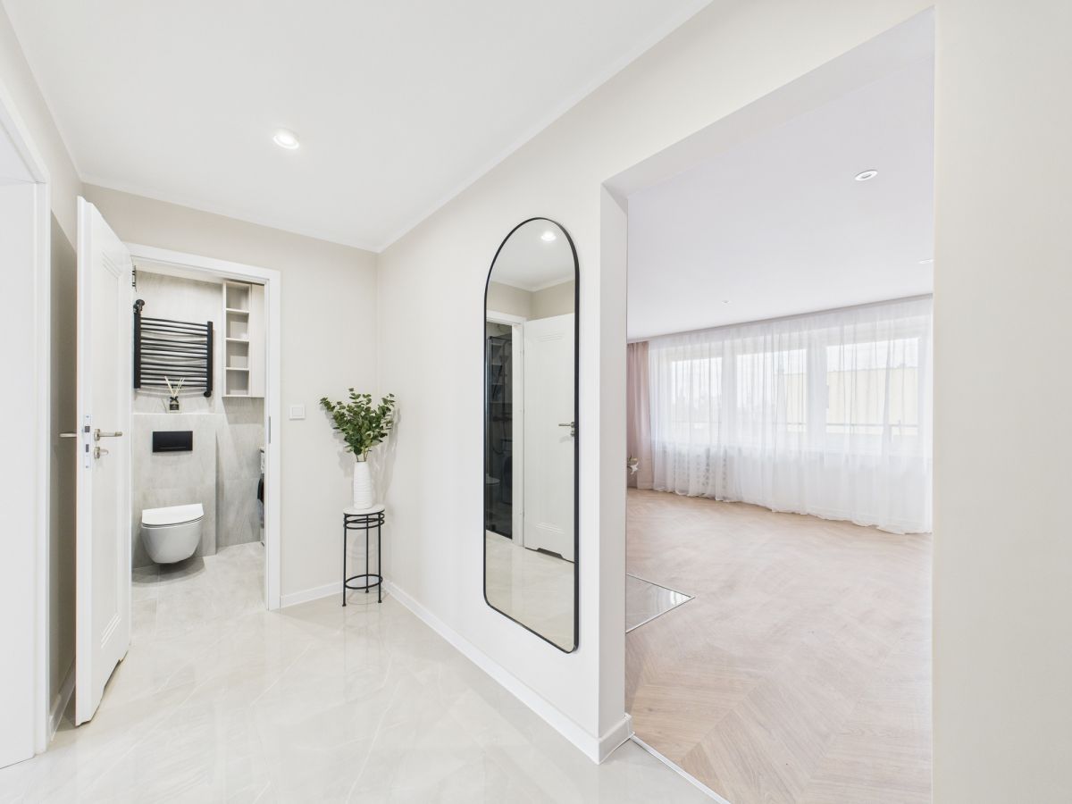 - Wykonano nowe gładzie na wszystkich ścianach a podłogi wyłożono nowymi płytkami oraz panelami, tworząc spójną i estetyczną całość.