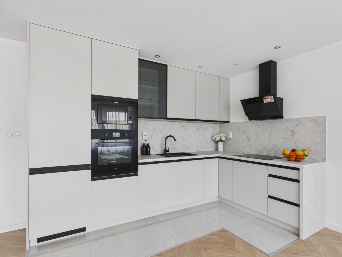 Aneks kuchenny został zaprojektowany z myślą o estetyce i wygodzie użytkowania. Wyposażony jest w nowy, nieużywany sprzęt AGD w pełnej zabudowie.