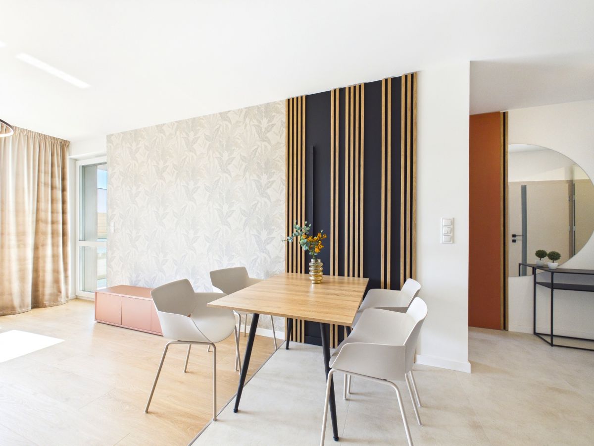 Wnętrza zostały zaprojektowane przez architekta wnętrz i wykończone z należytą starannością. Materiały które zostały użyte są wysokiej jakości. Razem ze świetnie dobranymi meblami i oświetleniem, stanowią spójną całość, zapewniającą komfort, wygodę i luksus ;)