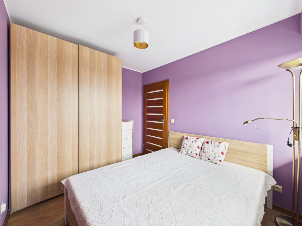Sypialnia z łóżkiem i szafą — na końcu mieszkania, tam gdzie kończą się wszystkie ambitne plany dnia.